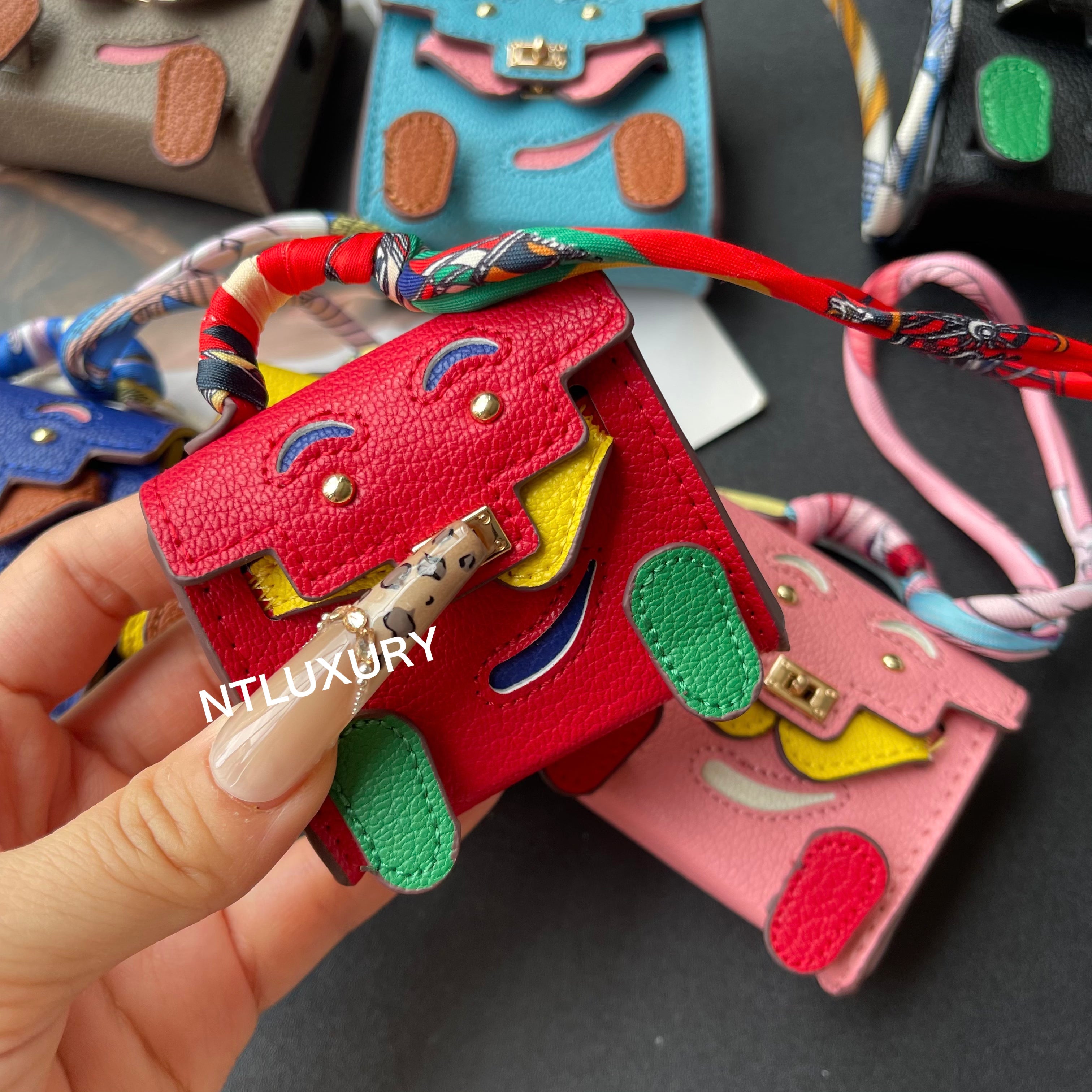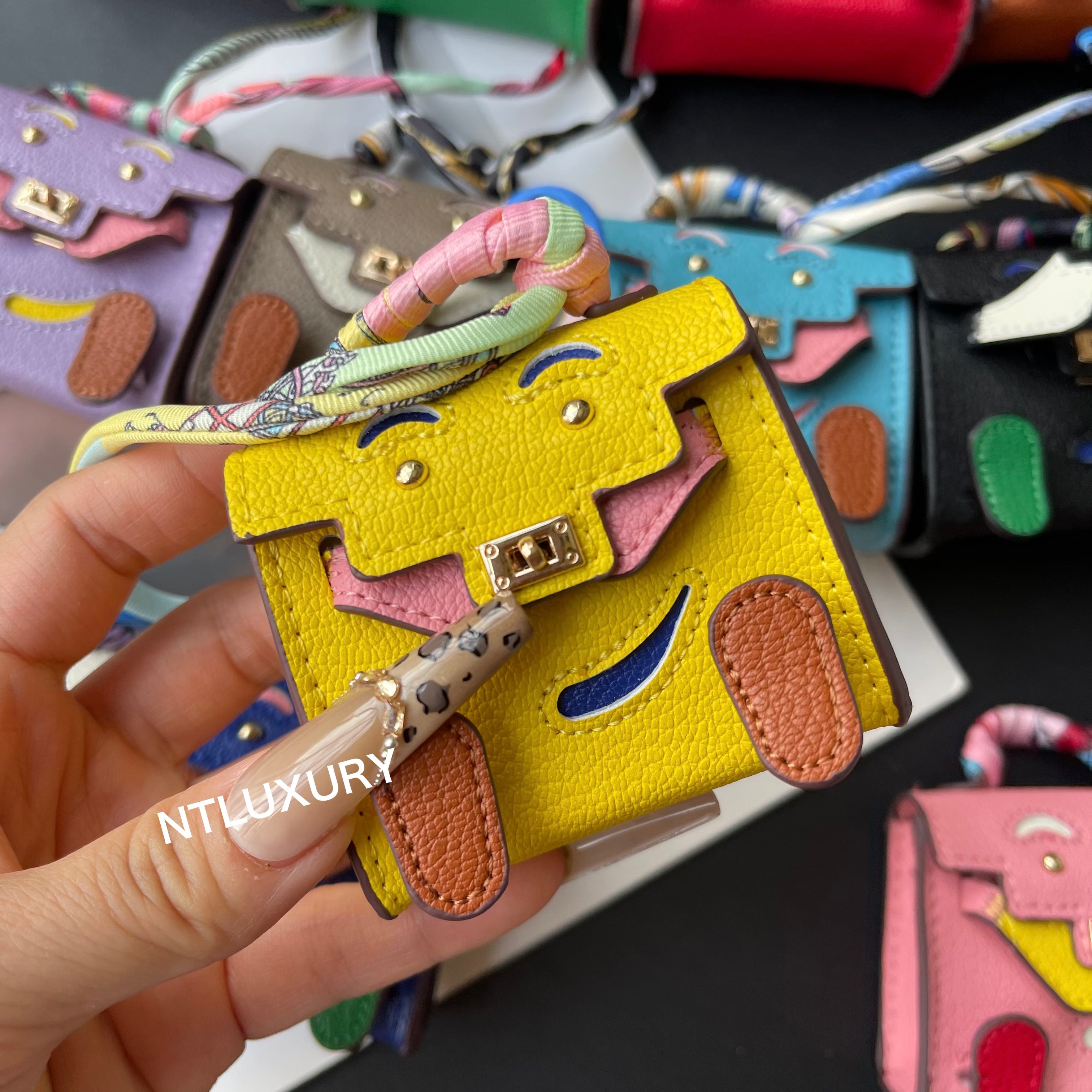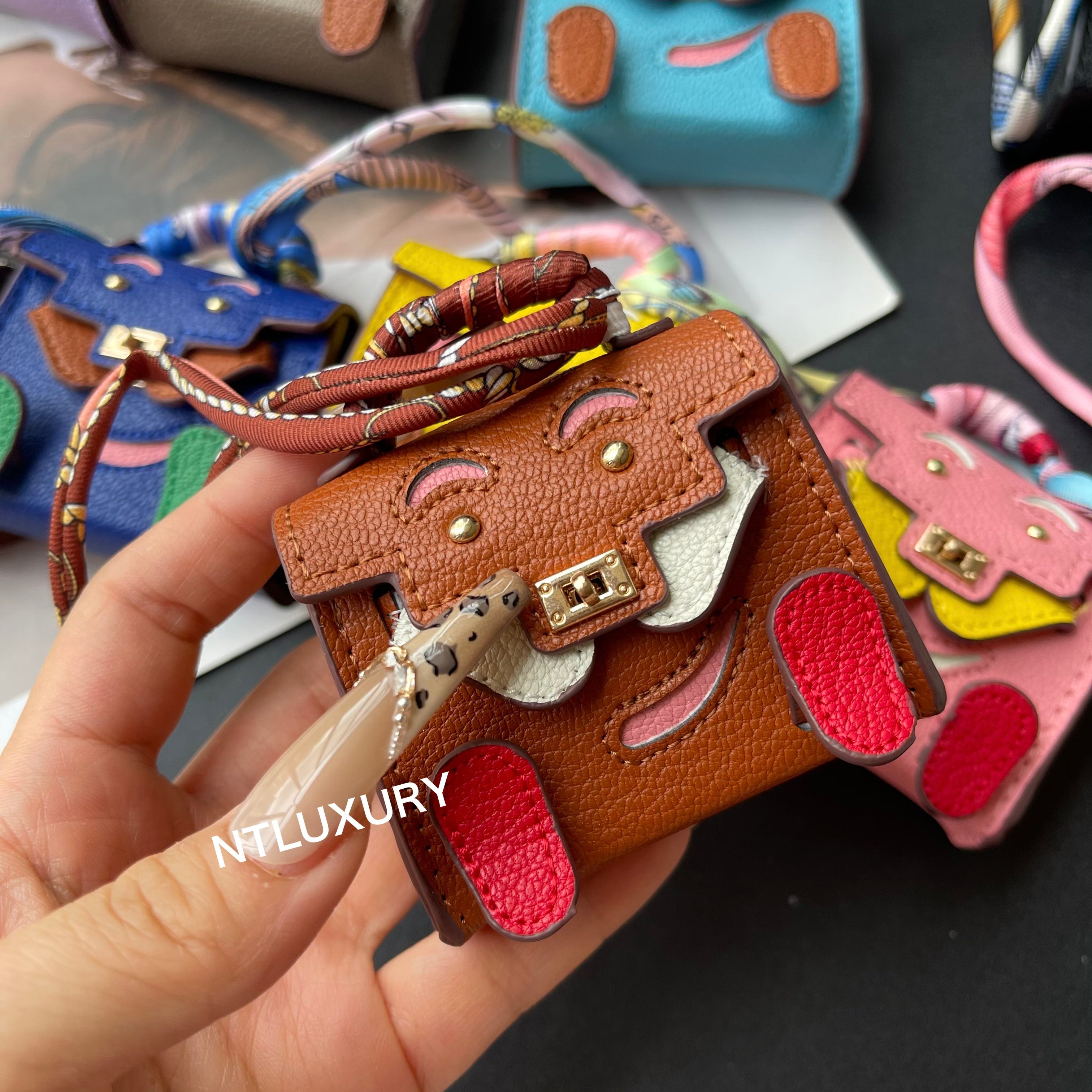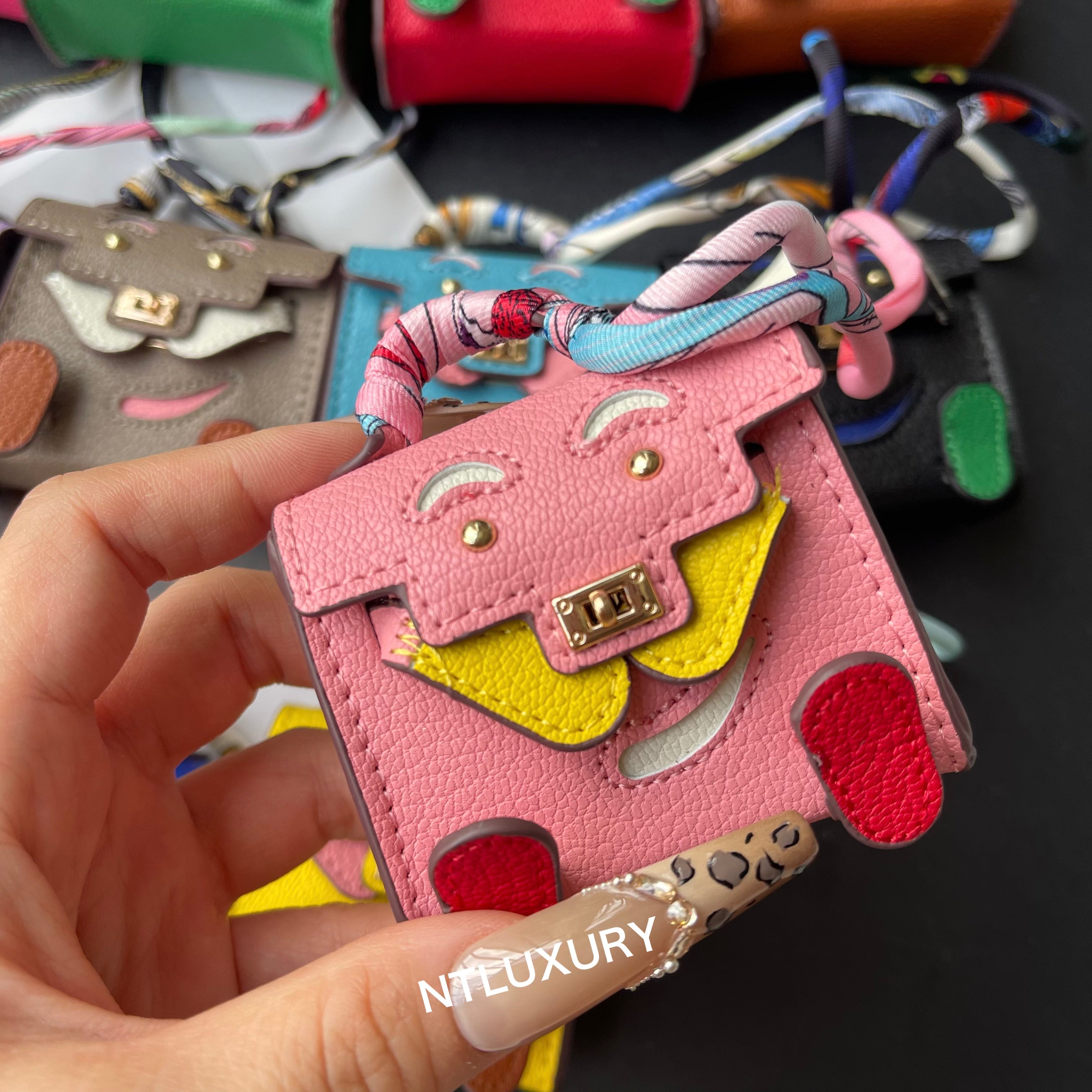 - This mini bag can hold your earphones, keys, lipstick, and more. It can also carry your charm, and can even be worn as an accessory on your bag or keys.