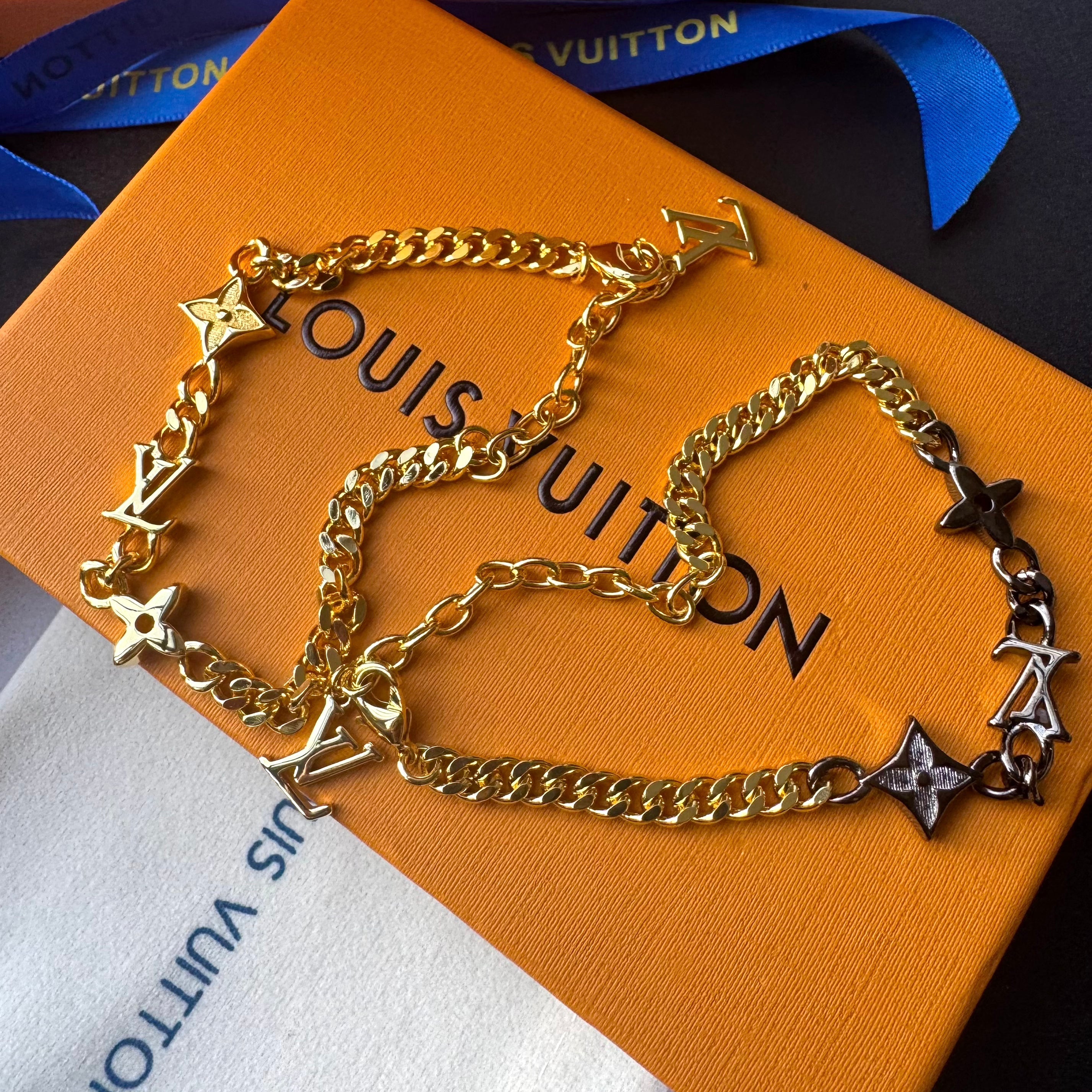Gold Black Love Chain Bracelet