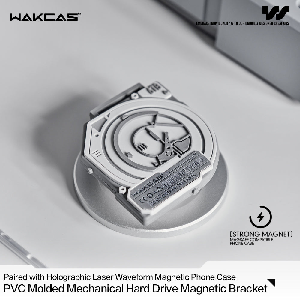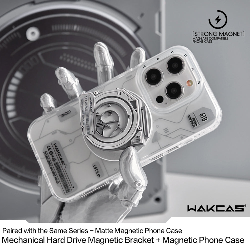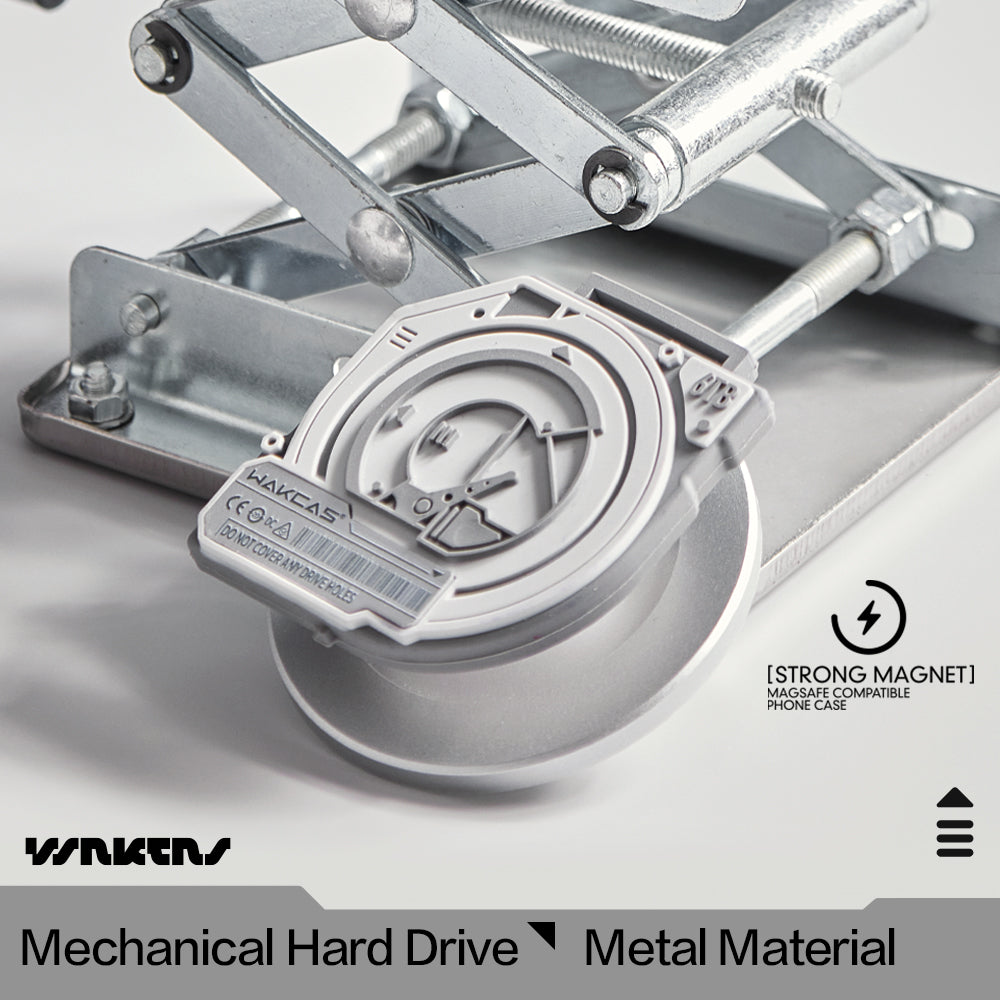 WAKCAS Hard Drive Magnetic iPhone Case Stand – a perfect blend of mechanical style, magnetic innovation, and personalized functionality. Crafted with precision and inspired by the aesthetics of a hard drive, this case stand is more than just an accessory; it's a unique statement of style, trendiness, and expandable versatility for your iPhone.