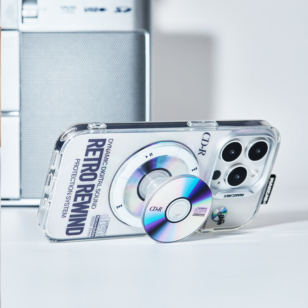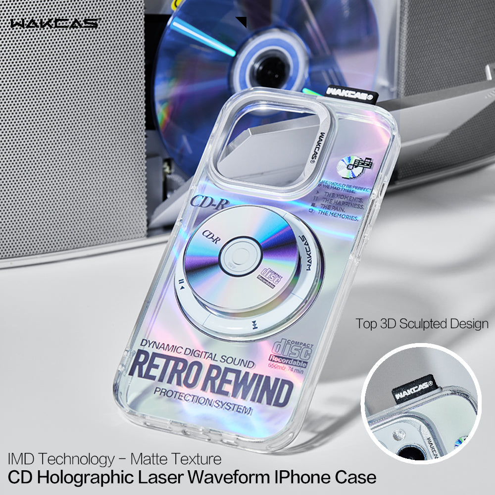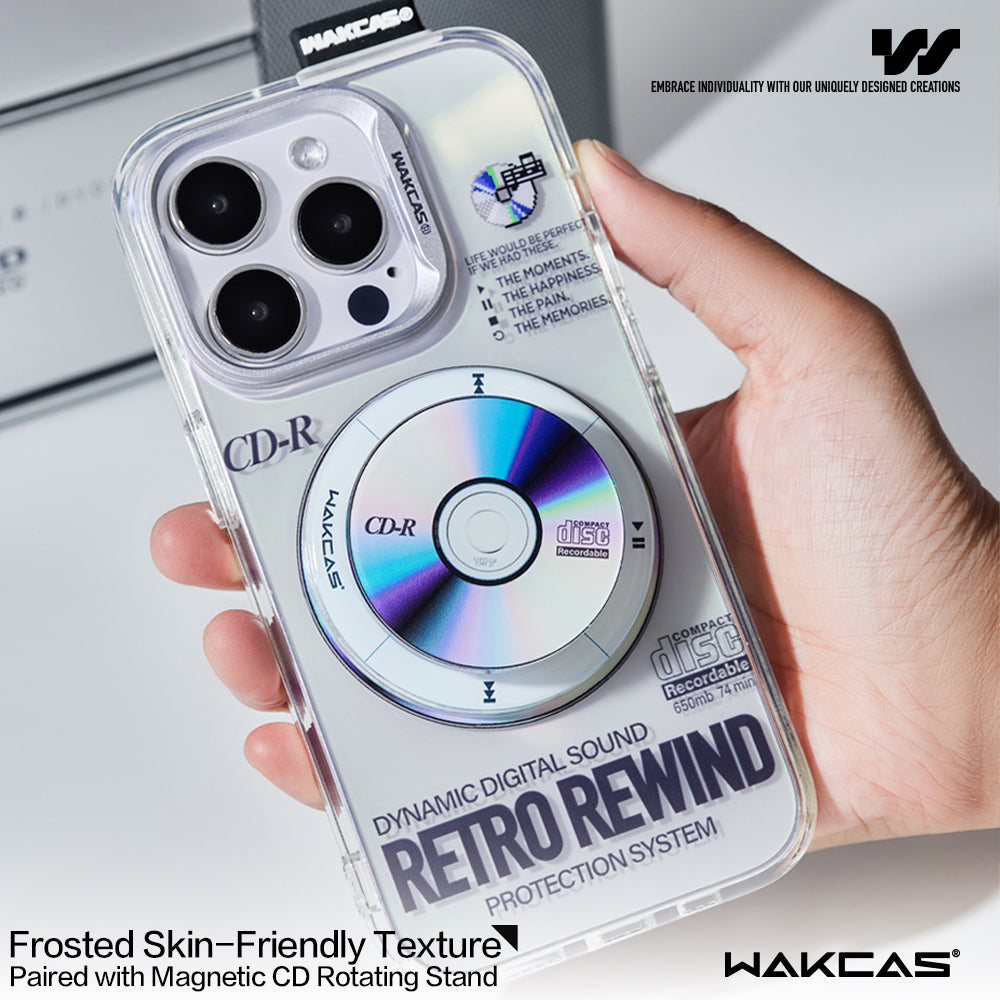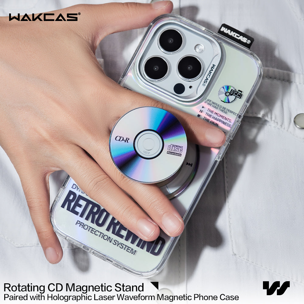 WAKCAS Rotating CD Magnetic iPhone Case Stand – a mesmerizing combination of style, innovation, and a nod to the classic era of CD aesthetics. Crafted with precision, this case stand features a rotating stylish new magnetic phone stand inspired by CD laser engraving, offering a unique and sophisticated accessory for your iPhone.