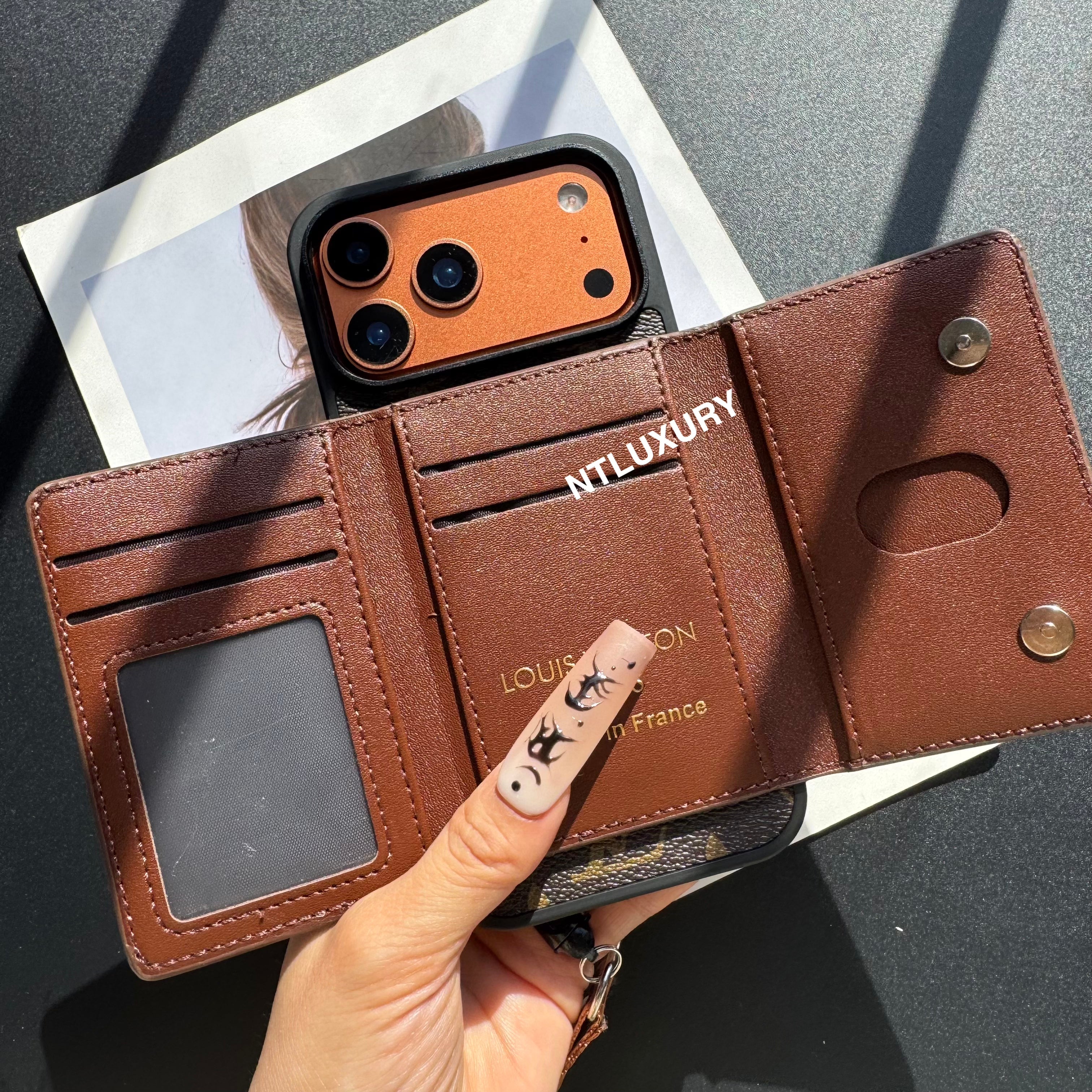 The card holder is magnetic, and the phone case is also magnetic. The phone case can be used separately from the card case or together.
