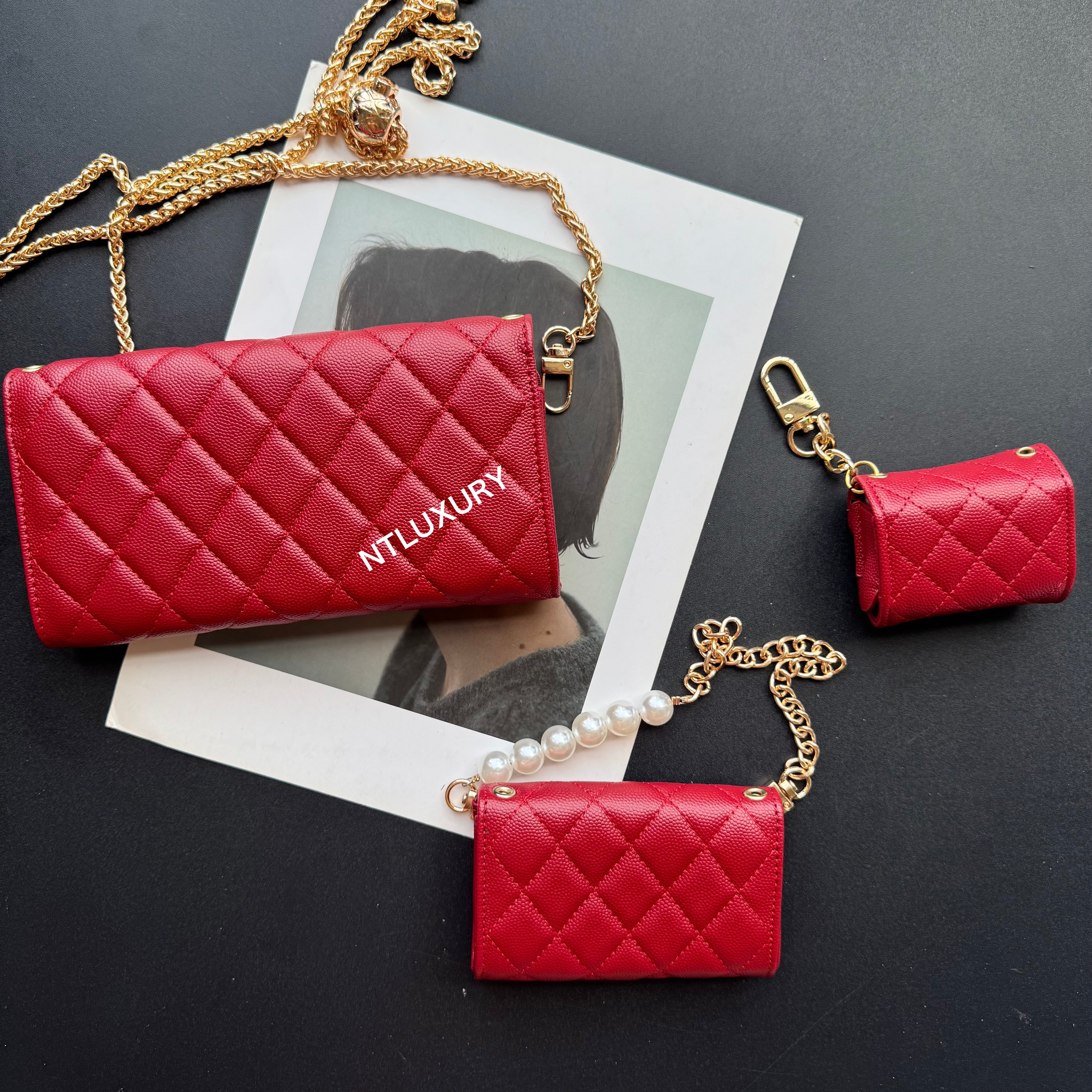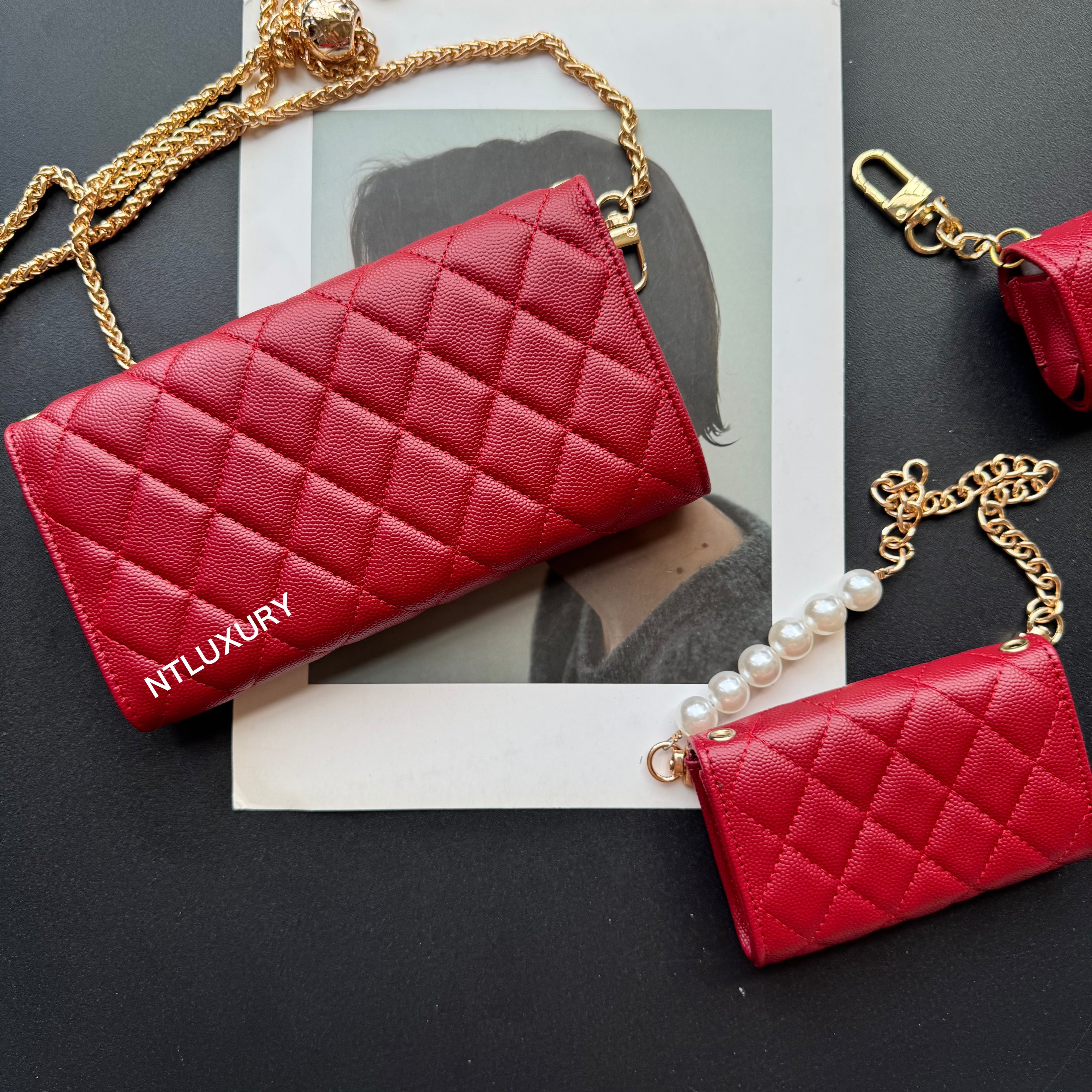 Measuring 190mm x 105mm, the large bag comes with an adjustable long chain strap, making it versatile for both handheld and shoulder carry. Its spacious interior is perfectly sized to hold a smartphone, multiple cards, a lipstick, and other daily essentials, offering both practicality and style for everyday use.