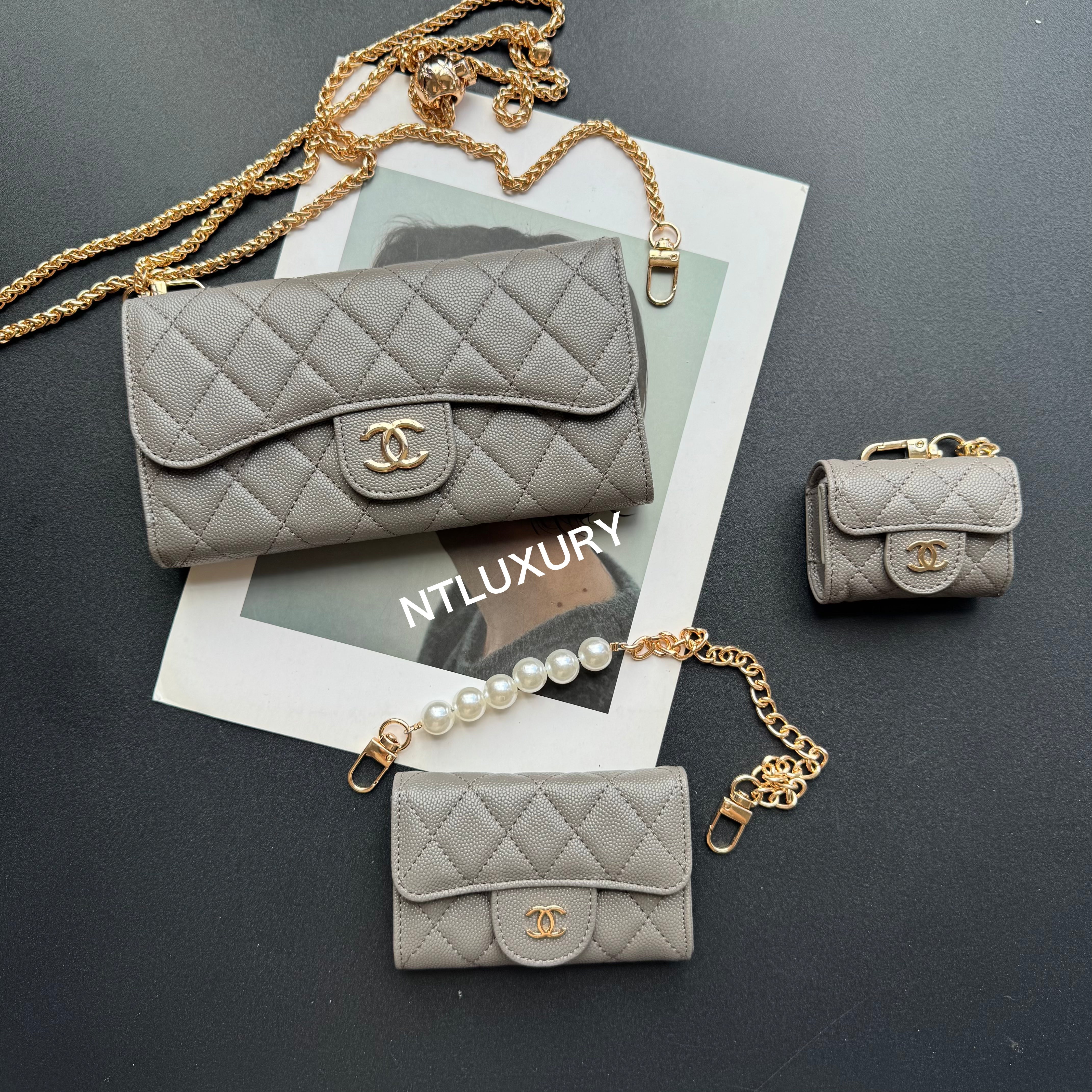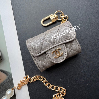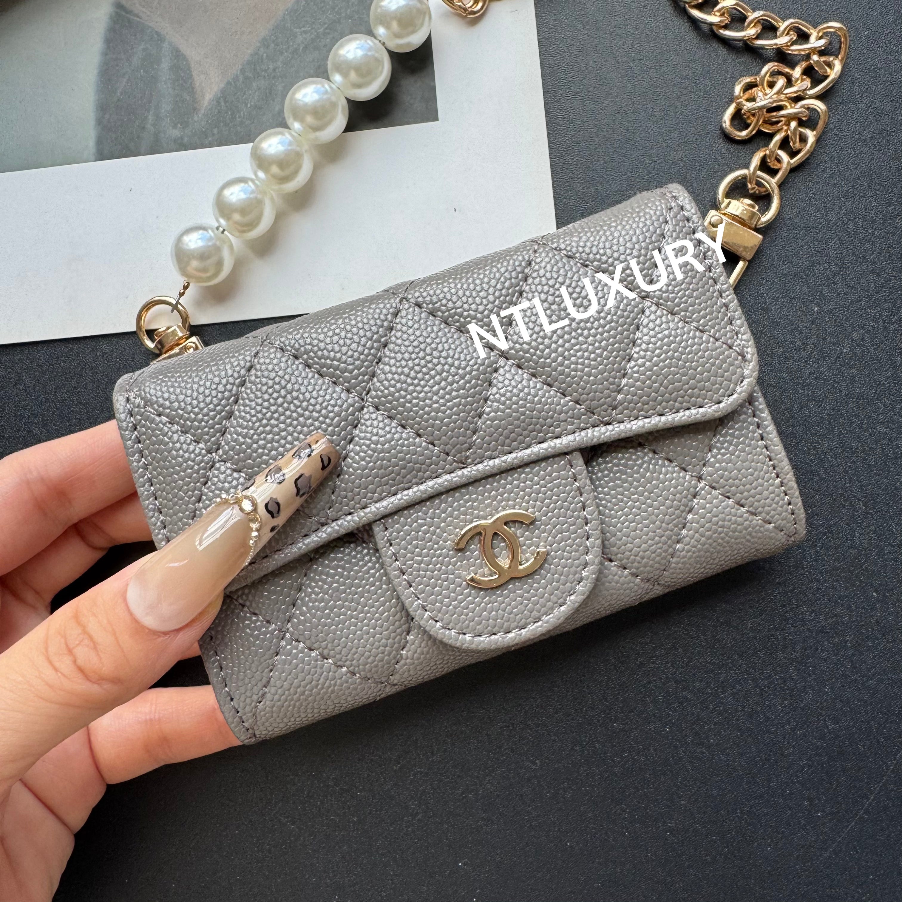 With dimensions of 115mm x 72mm, the medium bag features an elegant short chain adorned with a pearl, adding a touch of sophistication. It functions ideally as a compact card holder, conveniently storing cards, IDs, and even some small accessories. Its chic design makes it suitable for both casual and formal occasions.