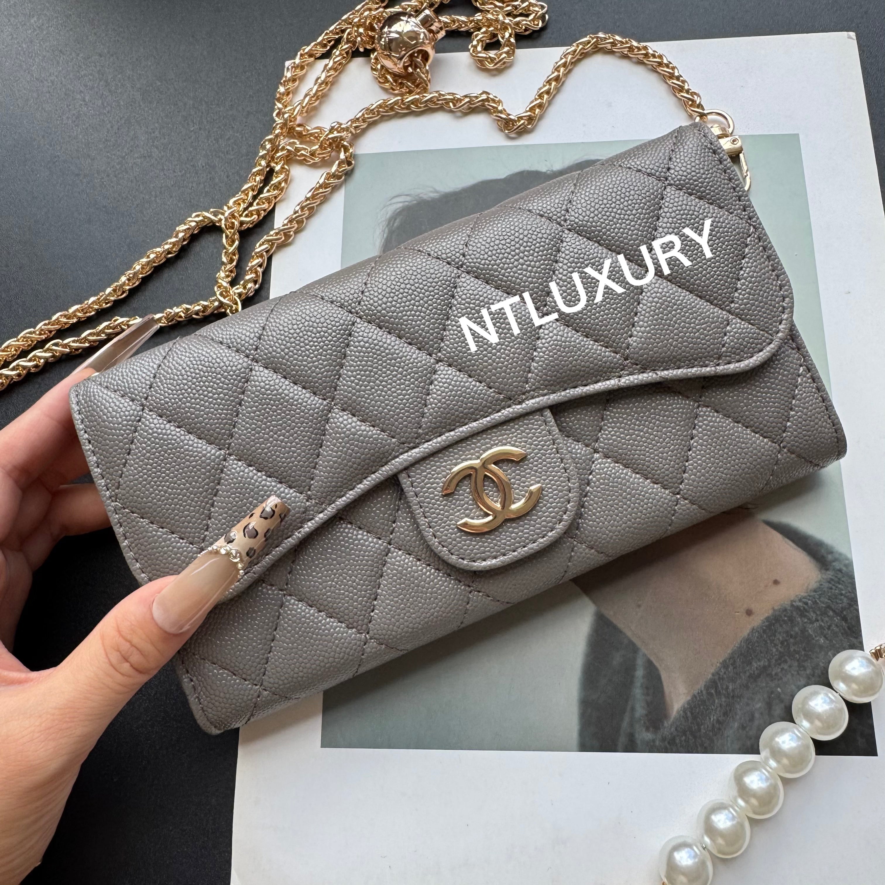 Measuring 190mm x 105mm, the large bag comes with an adjustable long chain strap, making it versatile for both handheld and shoulder carry. Its spacious interior is perfectly sized to hold a smartphone, multiple cards, a lipstick, and other daily essentials, offering both practicality and style for everyday use.