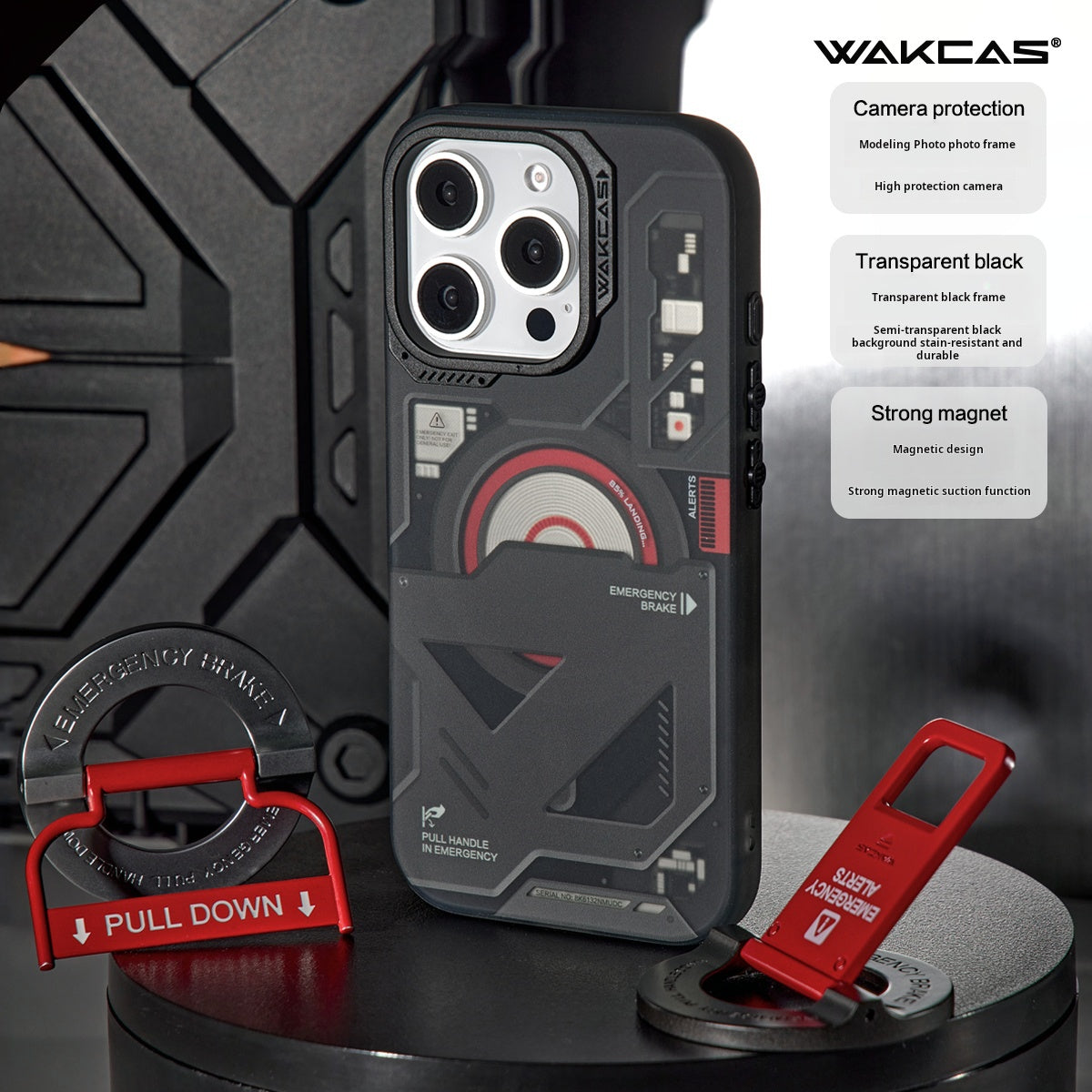 Wakcas Black Emergency Panel iPhone Case - Matte Magnetic Protection